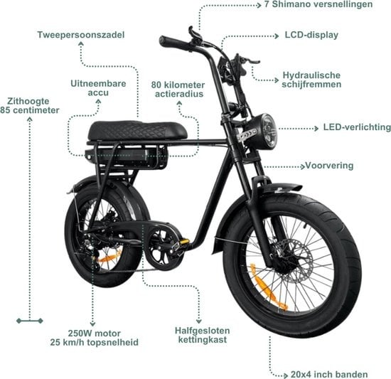 - Snelheid: 25 km/h (wettelijk maximaal)
